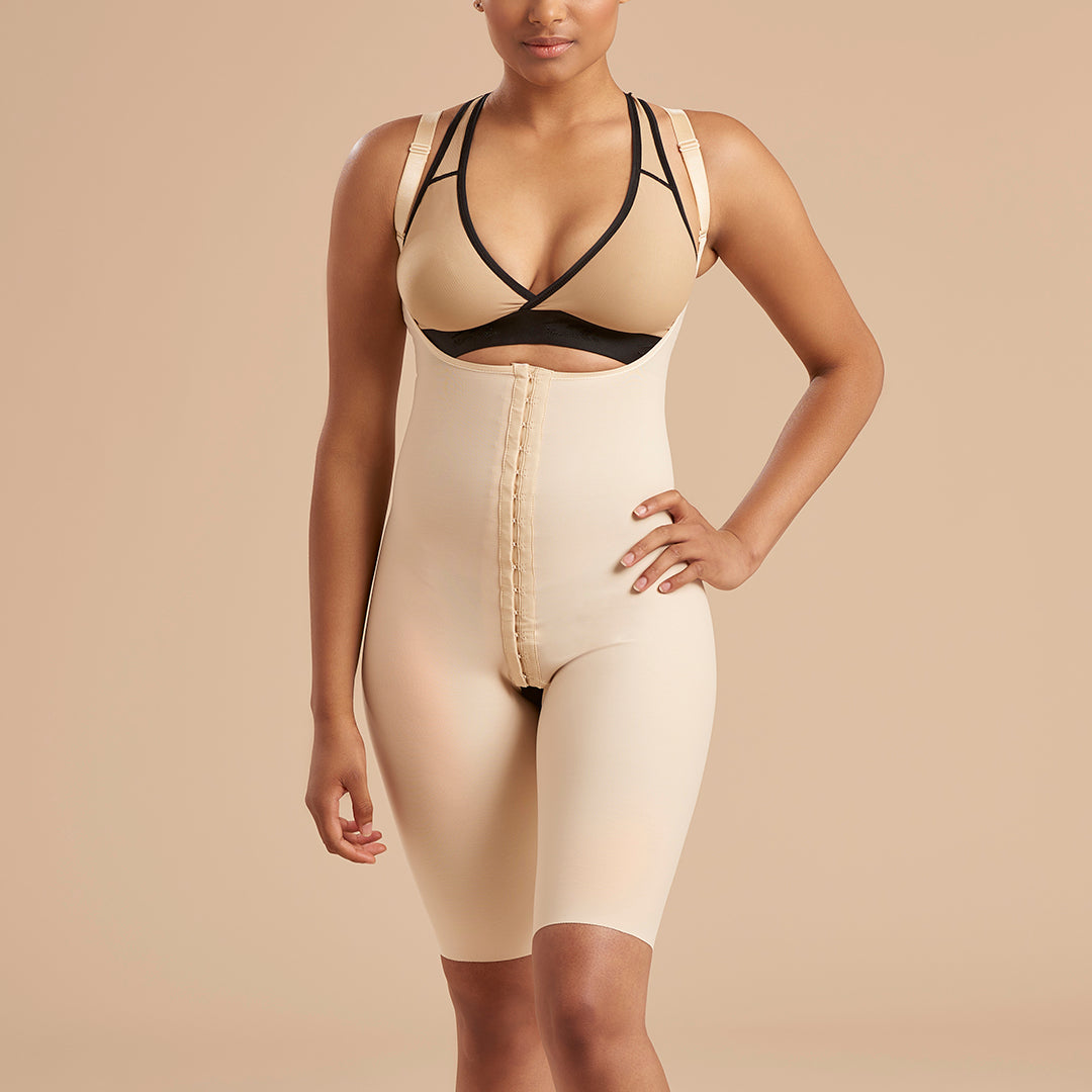 Un best seller. Conçu avec notre tissu breveté, ce short de compression offre une couverture complète du dos et est doté de bretelles réglables, d'une fermeture à crochets et œillets à 3 rangées à l'avant, de fesses préformées, d'une couverture au-dessus du genou avec une finition clean-cut, et d'un entrejambe ouvert.