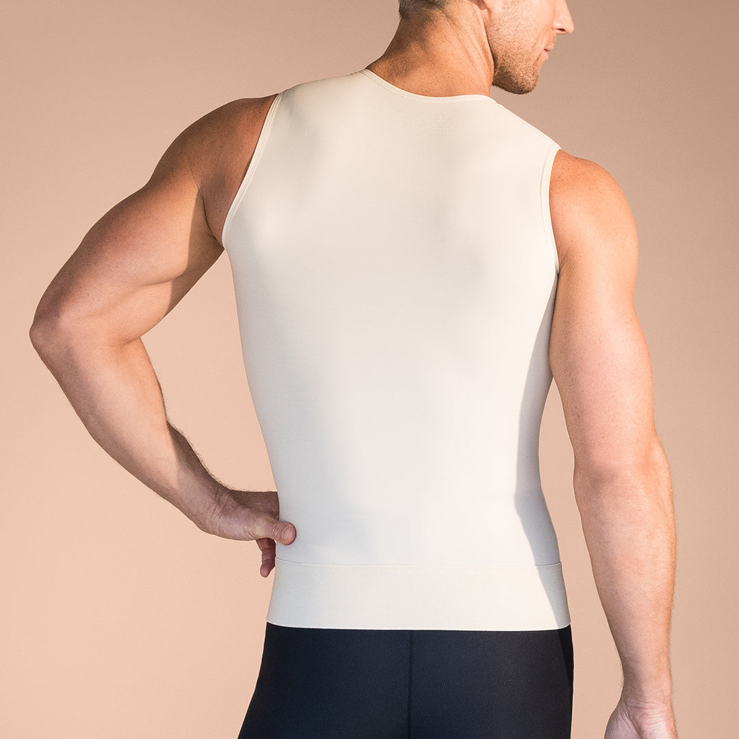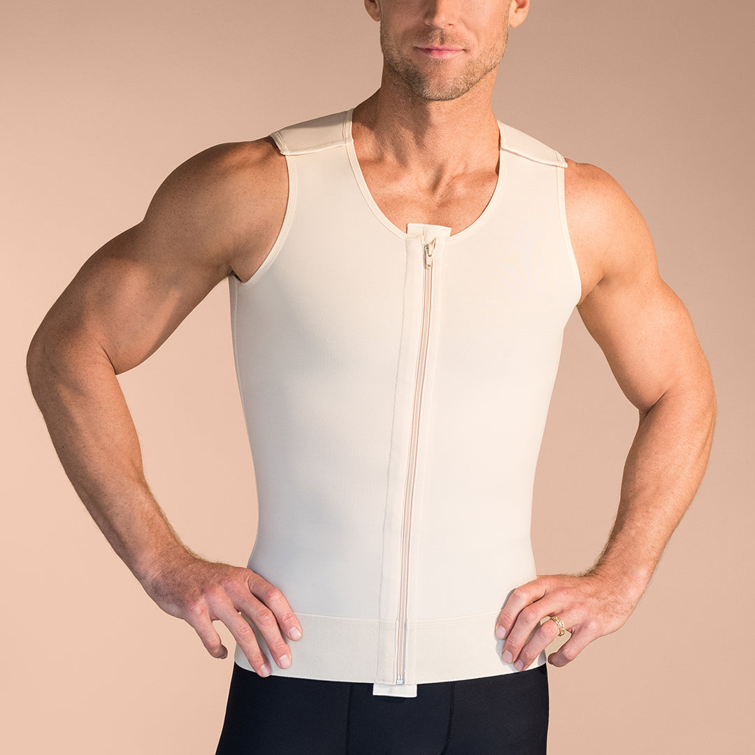 Ce gilet pour hommes, conçu avec notre tissu breveté TriFlex, est un gilet sans manches doté de bretelles réglables en velcro, d'une fermeture éclair doublée à l'avant et d'une large bande élastique en bas pour éviter qu'il ne remonte.